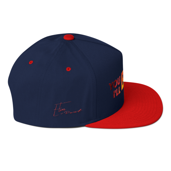 Send a message with this colorful five panel snapback constructed of 100% cotton twill, a snapback closure, sewn eyelets and a green under visor for an added pop of color.